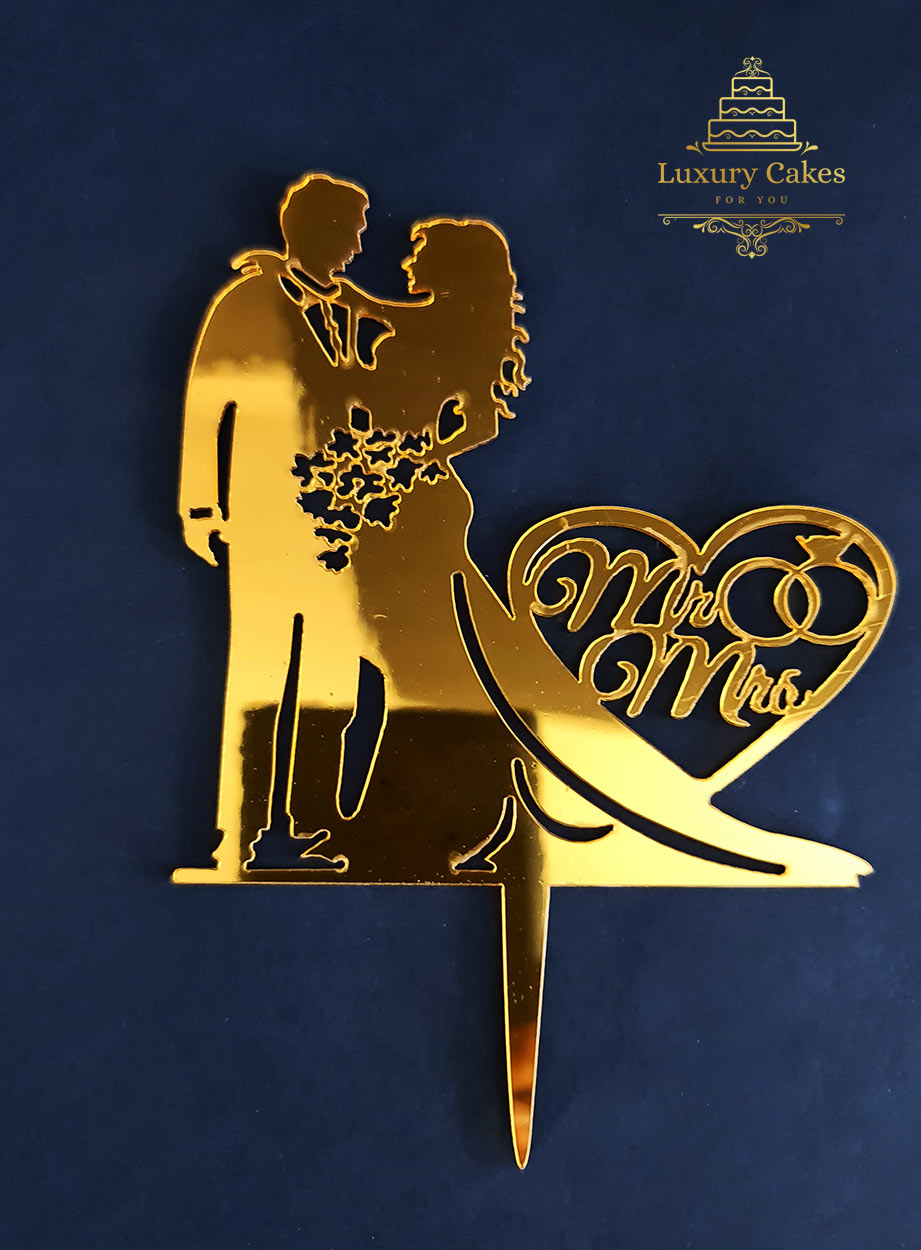 Wedding Acrylic topper. Colour Gold. Size: 15 cm. Not eatable.