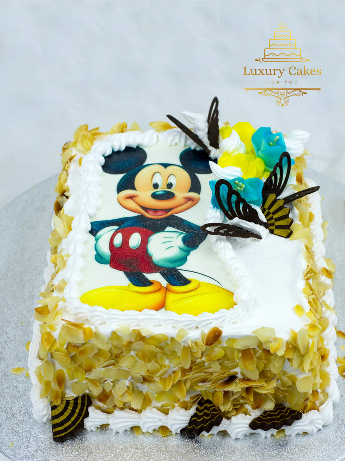 Square cake with Mikey image. décor may vary depend of availability. Portions approximately: S - 7" (10-12 pieces). M - 9" (14- 16 pieces). L - 11" (20 pieces).