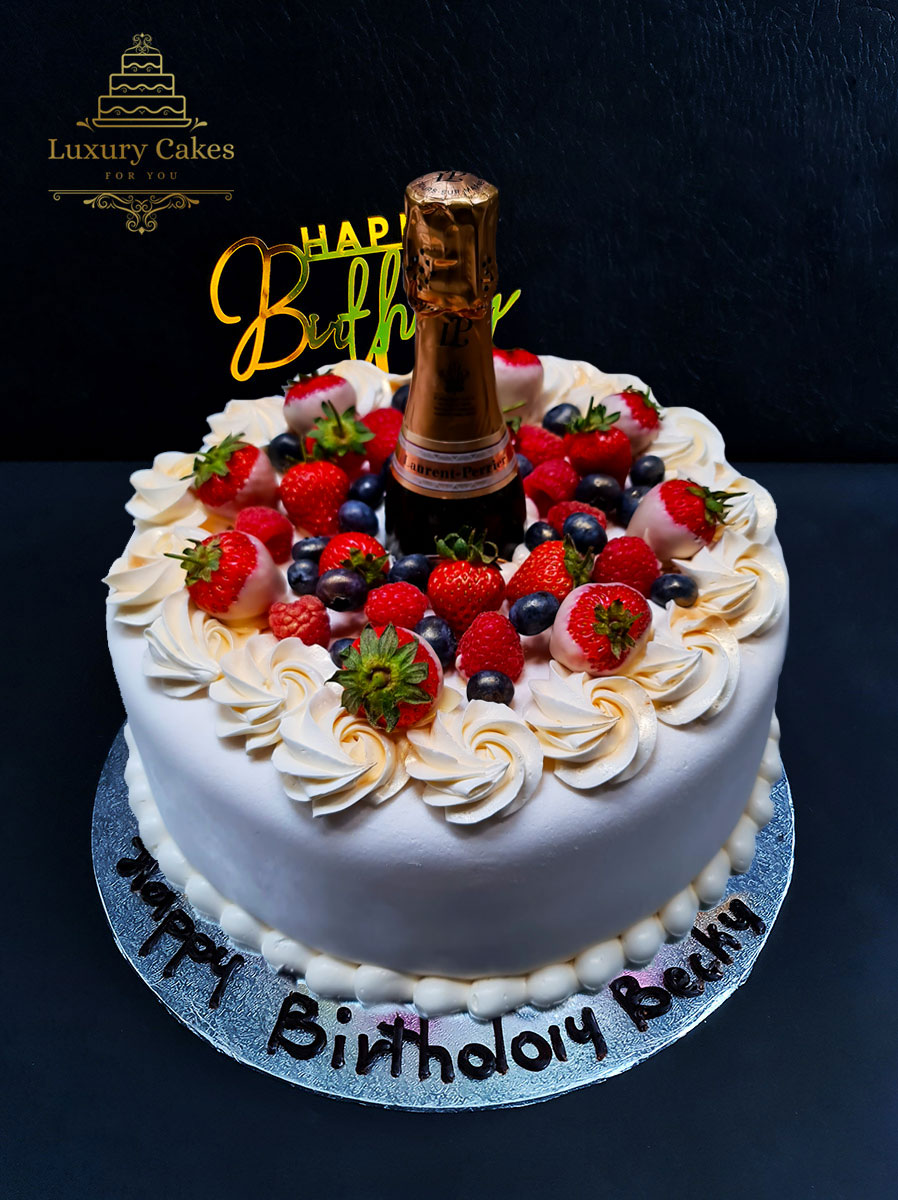 Cream cake with a bottle for your choice, could be Prosecco 200 ml original or pink, or Wine (white, pink, red). Design can be different depend from the cake size and your request. Can make Cream cake or Icing cake.